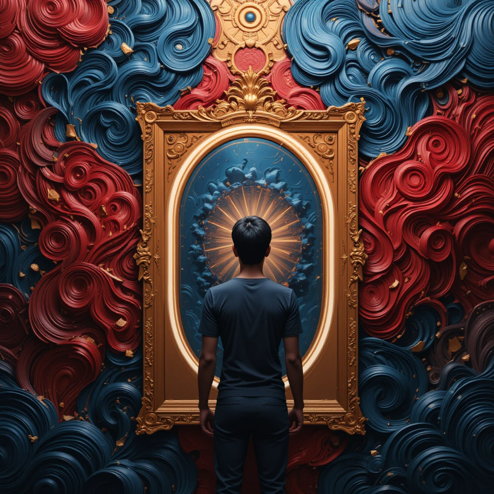 This thought-provoking series explores the concept of self-reflection through intricate, textured backgrounds and ornate frames. Each piece invites the viewer to contemplate their own identity and the layers that define it.